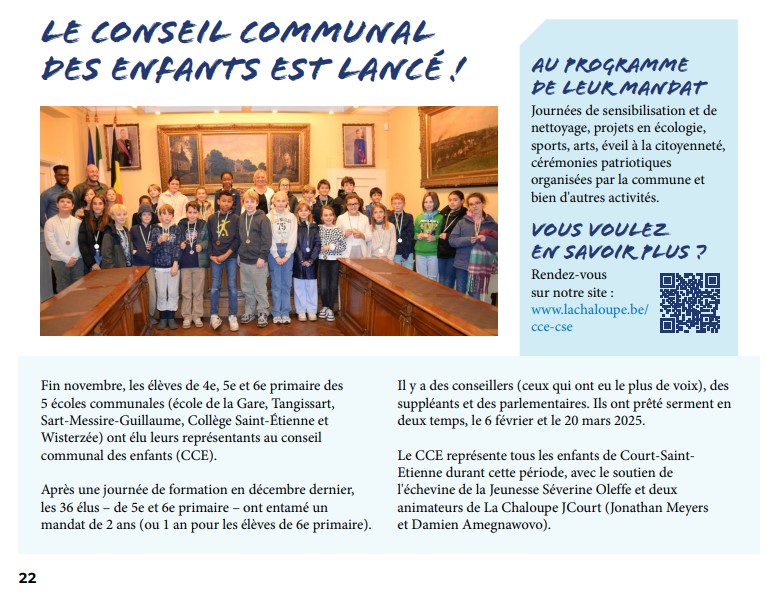 Ce jeudi 28 novembre, nos élèves de 4ème, 5ème et 6ème primaire se sont rendus à la maison communale de Court-Saint-Etienne, dans la salle du Conseil, pour élire leurs représentants au Conseil Communal des Enfants.